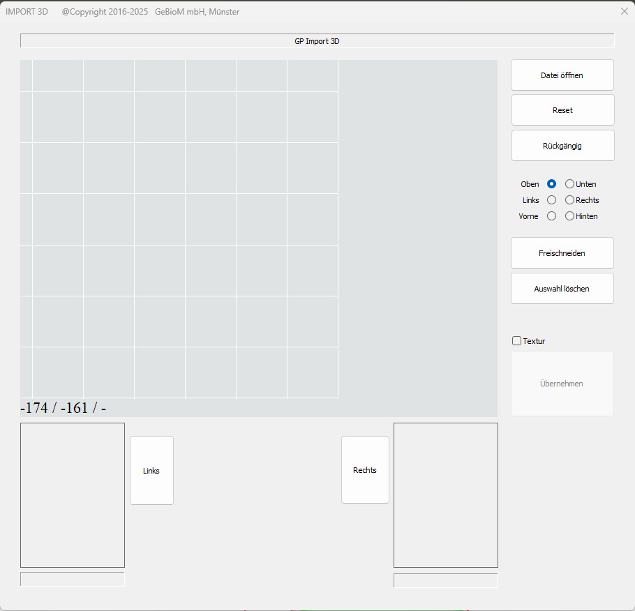 GP Import 3D is part of the GP Manager and must be activated by a GeBioM employee. The module is installed in a support session, for which the computer requires an internet connection